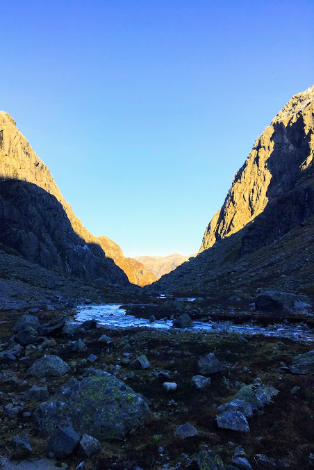 Sola forsvann bak ein fjellknaus att, og vi vandra vidare. Når vi fyrst var komen så langt, så måtte vi jo gå så langt at vi fekk sjå Pyttabreen.