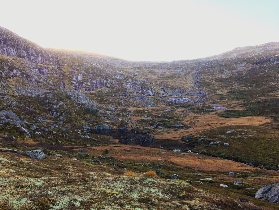 Når ein er ferdig med den bratte stien, kjem ein opp til denne fine dalen. Ser dåke hytta?