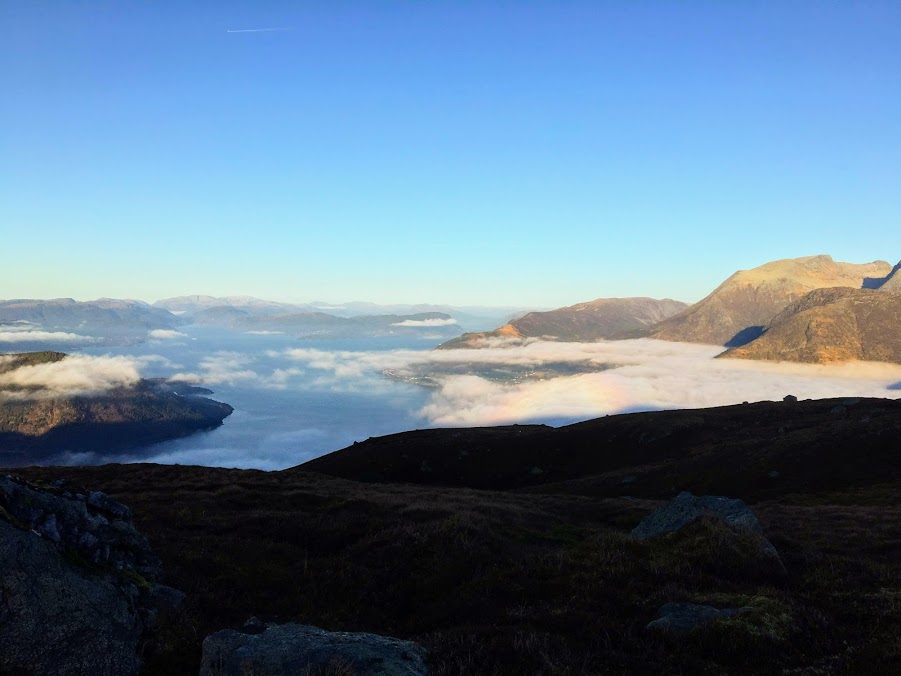 OK, det hadde vore flott om det no hadde lege eit tåkehav under oss, men på den andre sida, så kan vi vel nesten ikkje klaga over denne utsikta??