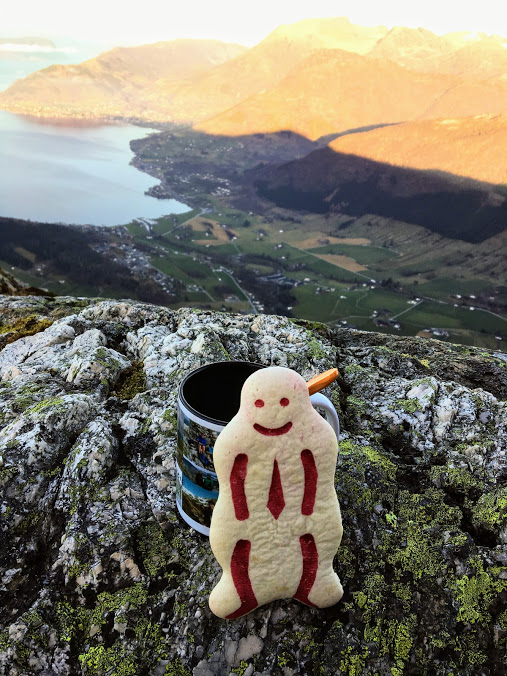 Så då fekk vi sitja her, eta nista vår og sjå på sola som skein på alle andre fjell rundt oss 😉