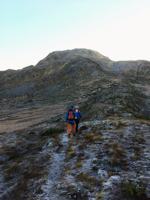 Eg synes det gjekk leikande lett å koma seg oppetter fjellsida i går. Julebord gjer tydelegvis energi 🙂 Men så var det perfekt terreng å gå i – hardt, men ikkje glatt og ikkje noko gjørma eller myr.