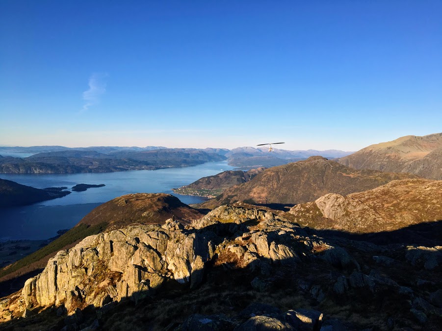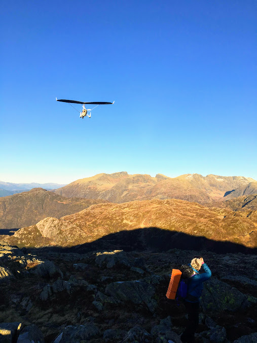 Medan eit par Leikvollar gjekk fjelltur med meg, sveva ein anna Leikvoll over oss 🙂 Jorunn ser svogeren fly forbi, bokstaveleg tala 🙂