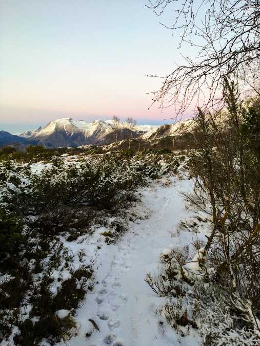 Litt snø og tråkka i når eg nærma meg toppen og Storhaug.