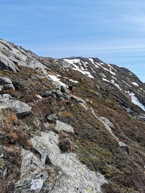 Vi klatra greit oppover fjellet og nærma oss sakte med sikkert toppen…