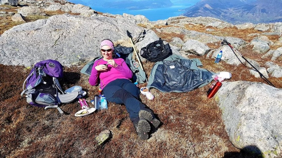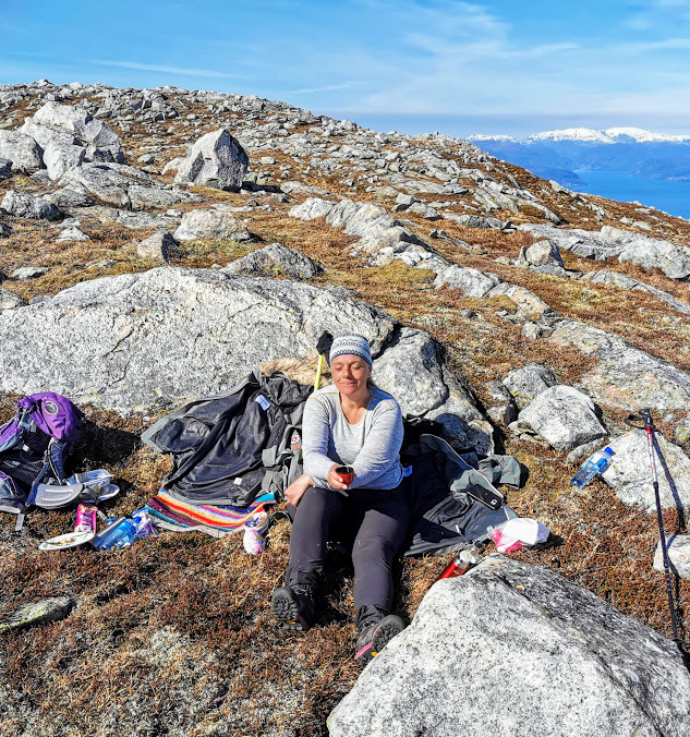 Vel oppe på fjellet fann eg turvennen min med kaffikoppen sin 🙂