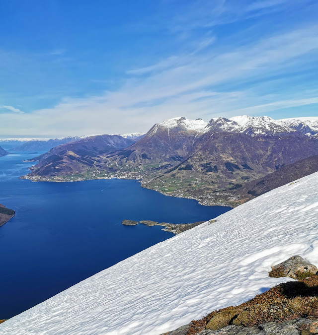 Gulp, eg vart litt svimmel av å sjå denne vegen og snøfonna som gjekk rett ned Men det var ikkje farleg å vera her, altså – vi trong ikkje bevega oss bortpå den 🙂