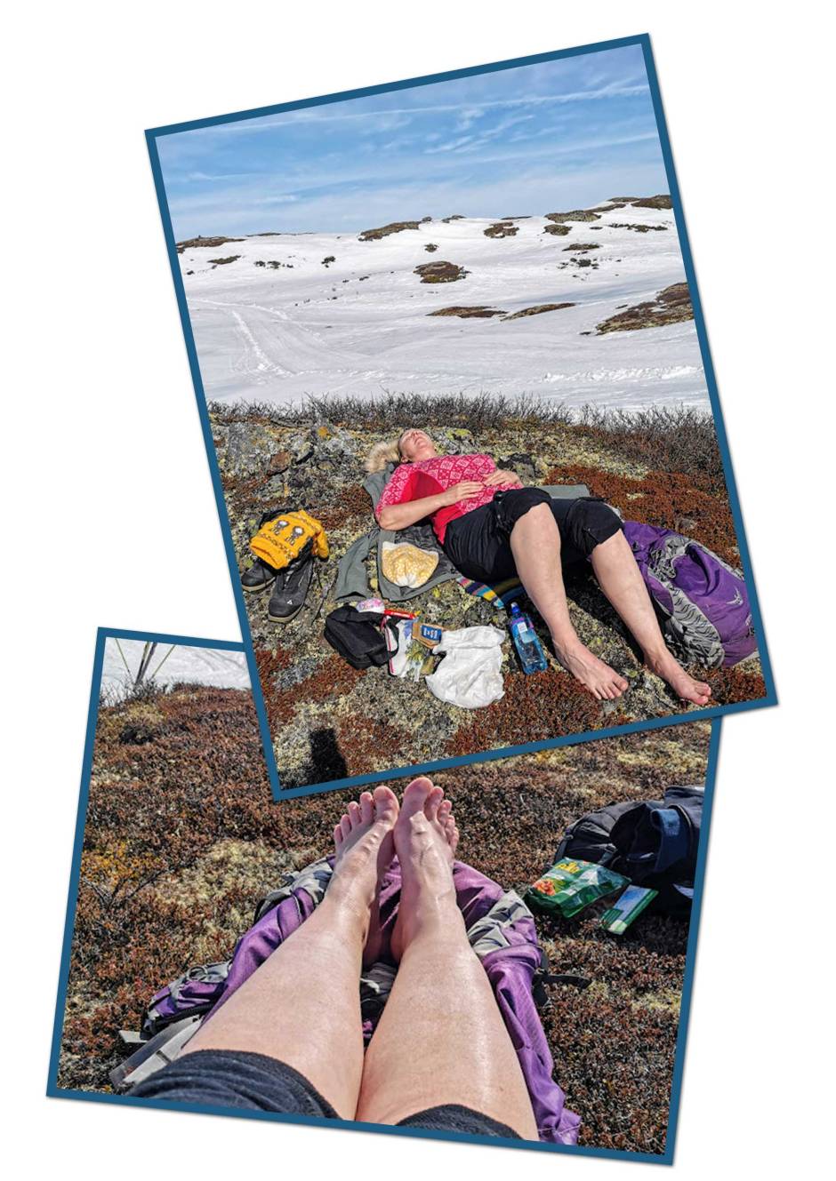 Som dåke sikkert har lagt merke til, var vi ikkje dei einaste som hadde lagt turen til fjells denne dagen. Det var folk overalt og er trur alle Noregs dialektar var representert. Marita sat seg opp ein augneblink og skulle prøva å telja alle folka ho såg. Ho gav seg når ho nådde 100 stk….