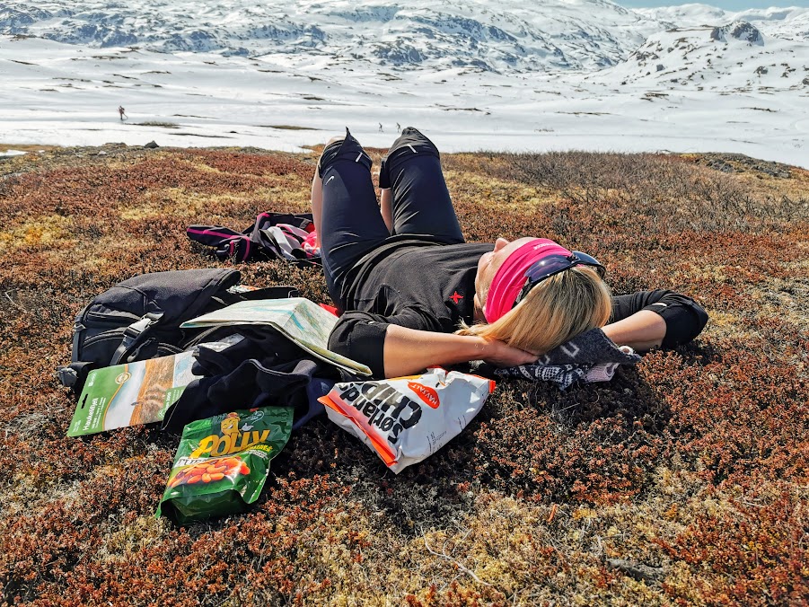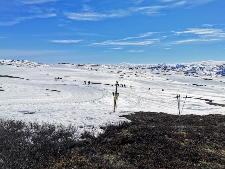 Vi valgte løypa som gjekk mot skisenteret på Vågsli. Eg har gått Haukelirennet eingong- i dritver! Då såg vi ikkje så mykje meir enn skituppane, så eg ana jo ikkje korleis det såg ut rundt meg. Det eg ikkje visste no, var at no var eg i same løypa – eg gjekk berre motsatt veg.