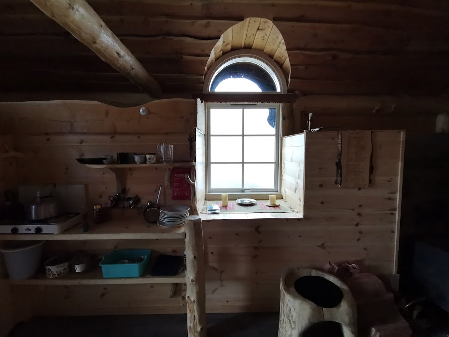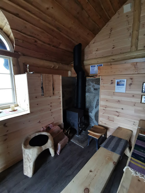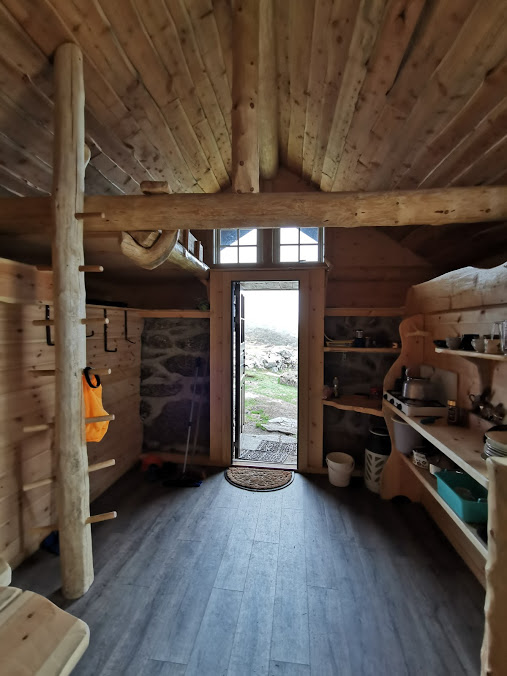 Det er ikkje godt å sjå på dette biletet, men det er hems m/sengeplass på alle fire veggene i hytta 🙂