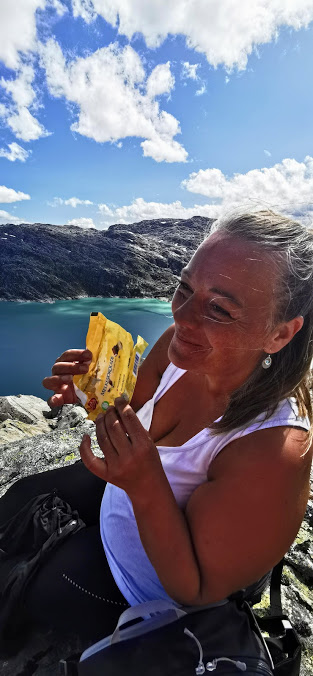 «Skal du ha med deg sjokolade på ein dag som dette??» Eg trur ikkje Ann Irene forstod spørsmålet, for sjølvsagt skulle ho ha med sjokolade! Den måtte ho sleika i seg….