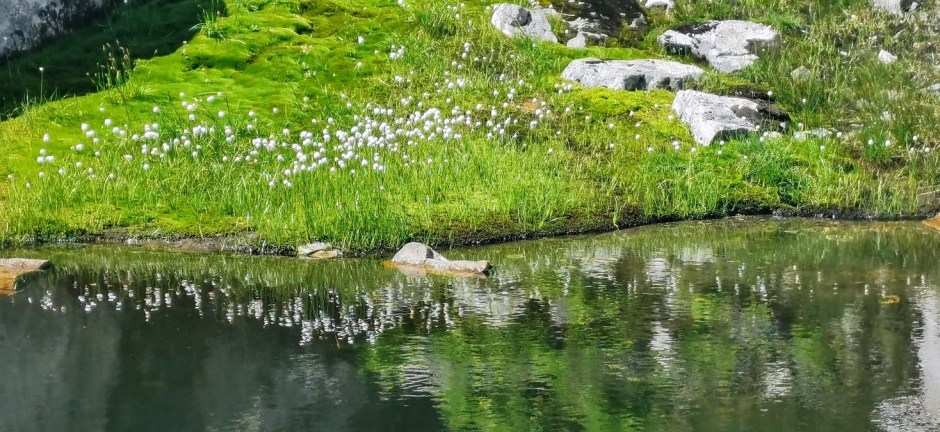 Vi måtte over denne moseplassen før vi kunne byrja gå på opp. Syntes det vart litt fine fargar på dette biletet 🙂