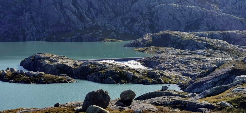 Vi tok ikkje sjansen på å gå ned «vadstien»og ikkje koma oss over elva. Som dåke ser – det byrjar fylla seg opp med vatn igjen, men det er likevel langt ifrå fullt enda.