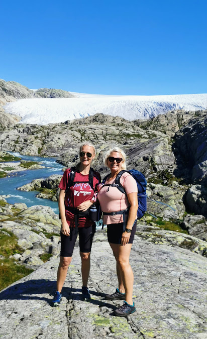 To sporty damer som gledar seg til å nå inn til Svelgabreen 🙂