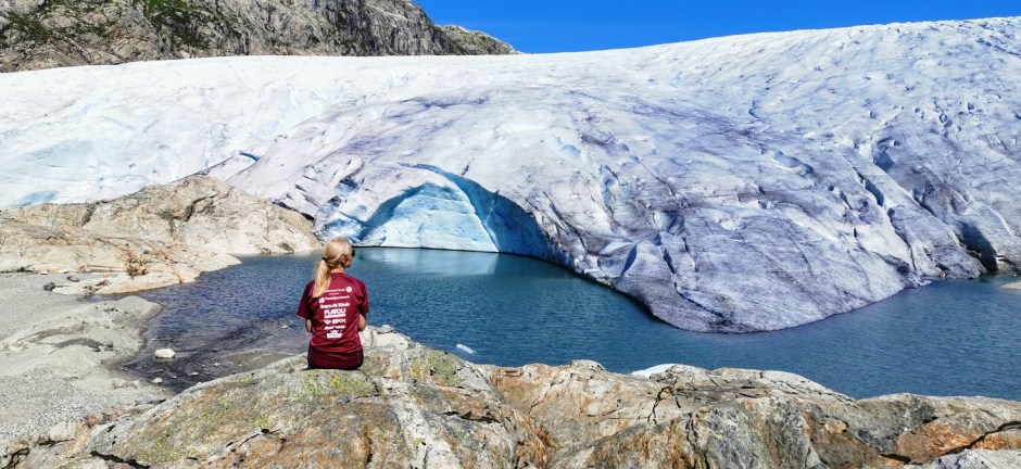 Og vips – så var vi framme. Lene kunne setja seg ned og nyta synet av Svelgabreen 🙂