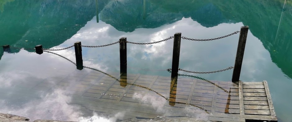 Det oppstod eigentleg eit lite skilje her ved byrjinga av vatnet. Her var det den eldre garde som råda, medan når vi no bevega oss mot andre sida, var det dei yngre «instagrammarane» på jakt etter det perfekte biletet som tok opp plassen. Vi rekna oss og i den kategorien i går 😉 Skilnaden på oss og dei andre var at vi visste at vi kom til å sjå mindre og mindre av brea dess nærare vi kom – dei trudde nok dei skulle komma tettare innpå. Det gjer ein jo forsåvidt, men du ser jo ikkje brea på denne sida av vatnet. Med mindre du veit kor du skal gå, men den hemmelegheita held vi for oss sjølve 😉