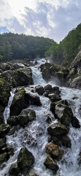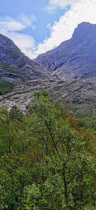 Dette var ein veldig fin tur i strålande ver, og vi fekk til og med sett ein ny plass 🙂 Men det vart rett og slett litt for folksamt for meg. Eg trur ikkje eg kjem til å ta så mange sommarturar til Bondhusdalen lenger hvis dette der utviklinga. Og no er vi faktisk i slutten av august og ikkje midt på sommaren eingong. Det er kjekt at andre oppdagar kor fint vi har det, og vil gå tur her, men vi er ikkje så glad i gå tur i kø, så det spørs om ikkje dette kjem til å bli ein høst-/vinter-/og vårturplass for oss no 🙂