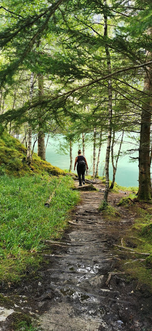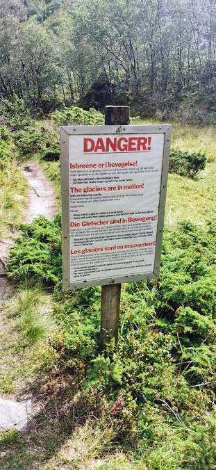 Ann Irene og eg var einige om at vi hadde,tross alt, hatt ein fin tur opp hit, men at det no var på tide å koma seg til turens eigentlege mål – stranda. På veg ned att traff vi nok eit par. «Will we be able to see the glacier at the end of this trail?». «No». «Oh, but will we get a view of the lake and valley?» «No». Stakkars, vi tok nok heilt motet i frå dei 😉