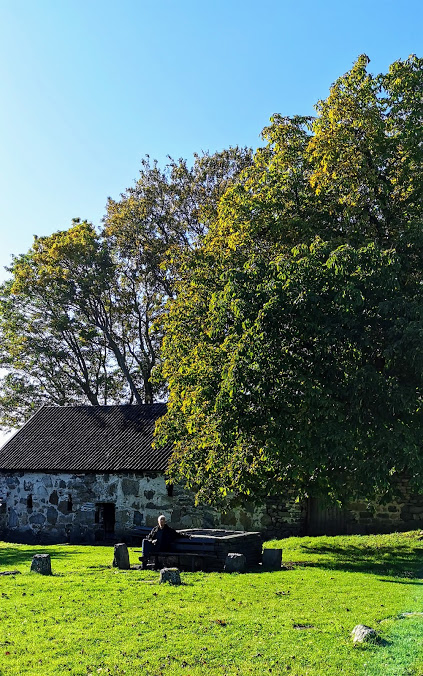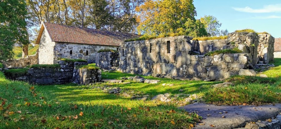 Etter pastasalat og rundstykker vart det bestemt at vi skulle køyra vidare til Halsnøy Kloster og ta kaffi og kaker der. Det var jo så fint ver og ingen hast med å koma seg heim.