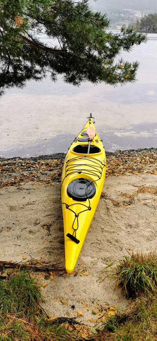 Det har ikkje blitt mykje padling i år – den Lille Gule er nærast blitt ein landkrabbe 😉 Faktisk har han berre hatt vatn ein gong under kjølen inntil fredagsettermiddag, då kom han endeleg på vatn igjen 🙂