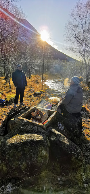 ….og kapra denne bålplassen. Flaks hadde vi óg, for akkurat i det vi sat oss ned, runda sola fjellsida 🙂