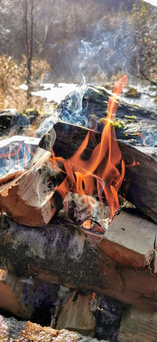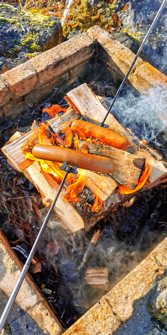 Vi hadde óg tenkt å brenna bål, men syntes det var litt for folksamt i gapahuken, så vi gjekk nokre meter tilbake…