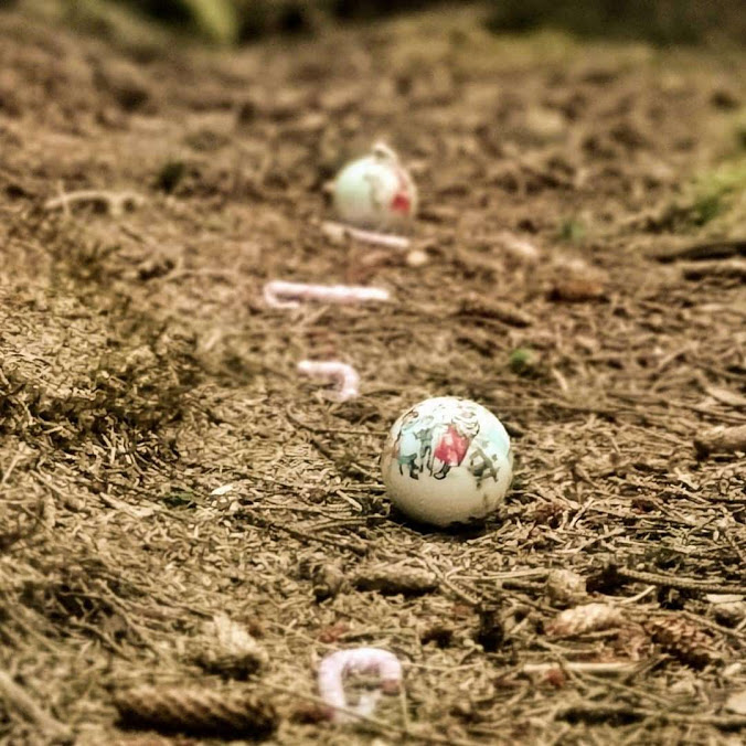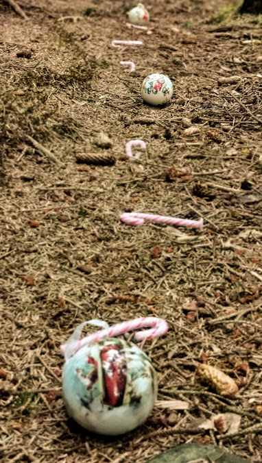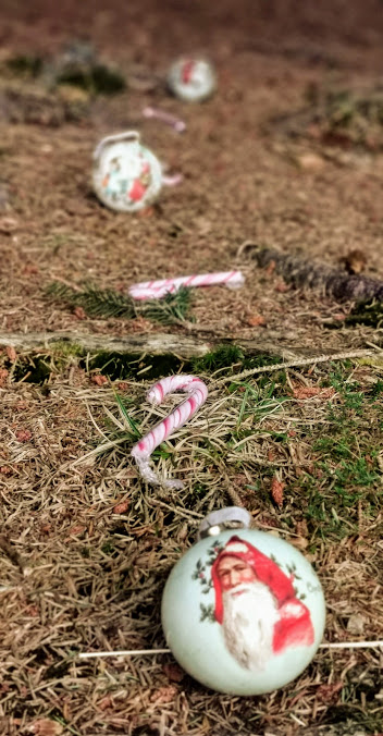 Sikkert like greit eg ikkje traff på andre i skogen når eg låg på alle fire å fotograferte julekuler og sukkertøy eg hadde strødd rundt meg… 😉