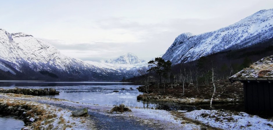 Myrdalsvatnet i sånn passeleg vinterstemning. Vi trudde det skulle vera litt meir snø enn det var.