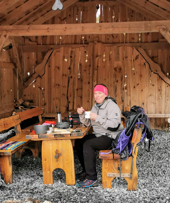 Då vi endeleg var klar for å eta, sat vi brått einsame igjen i gapahuken 🙂 Pannekakesteikjarane var gått, to damer som hadde skjeveniste med seg var gått, gjengen på 5-6 stk. som hadde ei gulrot med seg i kvar si lomme var gått etc. etc. Vi fekk med andre ord matro 🙂