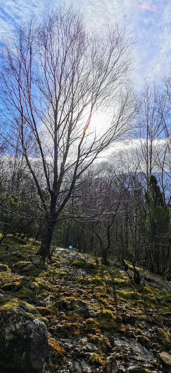 Eg hadde i utgangspunktet tenkt å gå opp til Storhaug og ned skogsvegen i dag. Men eg ombestemte meg kjapt. Det blas godt i tretoppane og eg ana at det kom til å bli enda verre lenger oppe på fjellet. Eg fann ut at det var fint nok der eg var 🙂