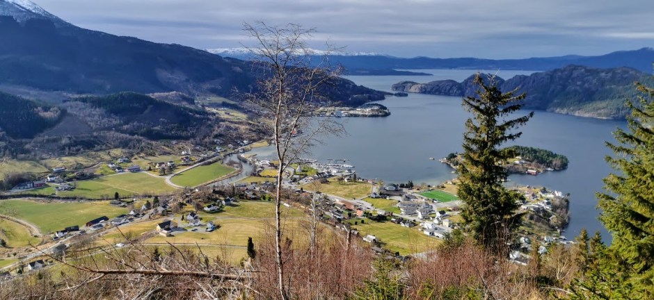 ….enn at eg kan kikka heim 🙂 Dvs. det er litt for mykje skog til at eg ser huset mitt, men det ligg no der nede ved foten av denne toppen 🙂
