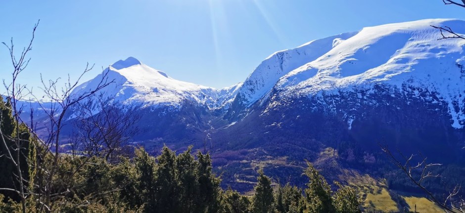 Ulvanåso og Englafjell er framleis kledd i kvit og når sola skin blir det reine Påskesteminga – det er kanskje ikkje så rar, for den er jo ikkje langt unna no 🙂