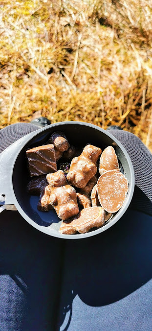 ….så eg fylgde skogsvegen ned eit lite stykke og gjekk opp denne avstikkaren, før eg fann meg ein nokonlunde vindfri plass å sitja.