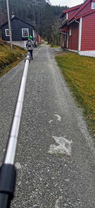 Det er nesten heilt utruleg at eg klarte å få tatt eit bilete av ei så lang strekke nesten utan eit menneske, for det var mykje folk ute å gjekk i dalen i går. Det er jo ikkje så rart, for her kjem jo alle seg fram anten dei går eller trillar.