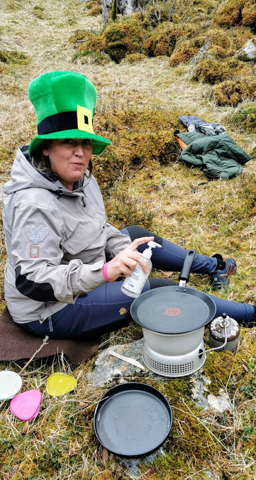 Pausen tok vi difor her, rett ovanfor brua. Eg drog fram stormkjøkenet, Jorunn drog fram antibac’en 😉