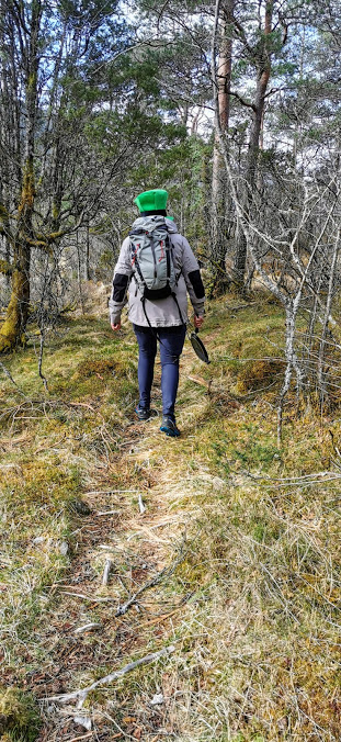 No stod vi brått i ukjent terreng begge to, for på denne sida hadde ingen av oss gått før. Då var det godt av vi begge byrja å bli svoltne, så vi gadd ikkje gå så langt – berre rett opp i skauen 🙂