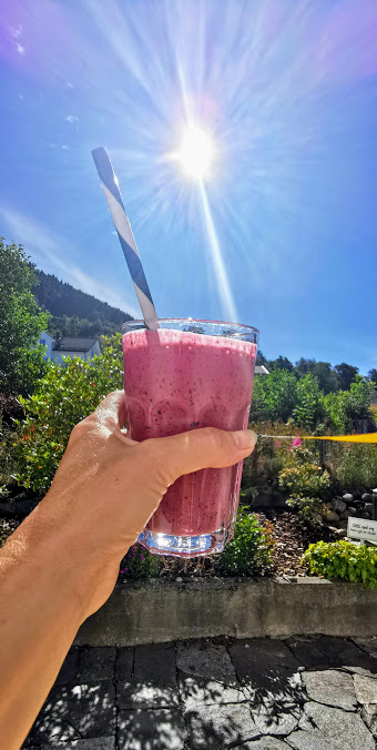 …..sola skein framleis på torsdag! Eg byrja dagen med ein blåbærsmoothie 🙂