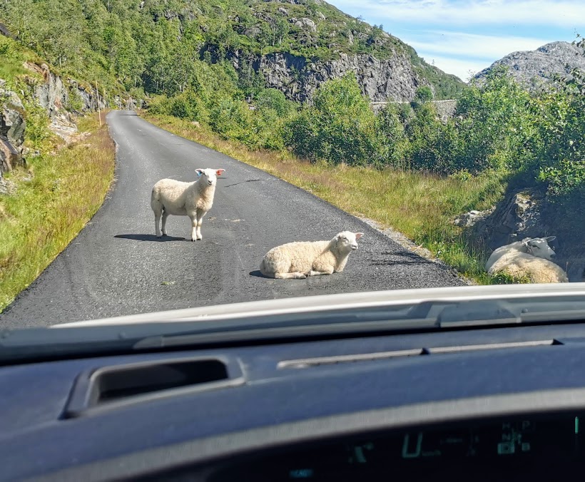 I dag, søndag, regnar det igjen. Dagen må brukast til å gjera seg klar for å byrja på jobb att i morgon. Eg gruar meg litt – mest til å ta på bukser igjen. Trur eg må prøva dei i dag – det blir litt for seint å sy dei ut i morgon tidleg 😉 Ja, for dei utallige timane eg har tilbrakt på sofaen med brus, chips og snop i ferien min, har eg jo ikkje nemnt i ferieinnlegga mine…. før no….