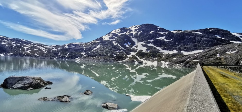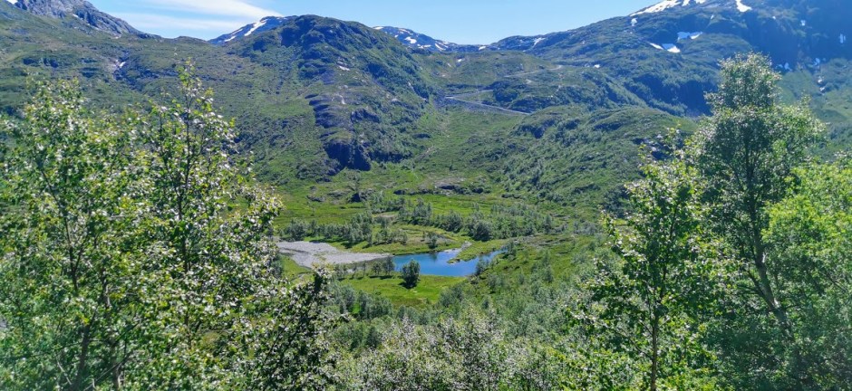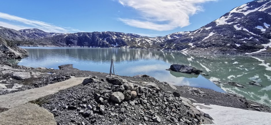 Lite vatn i vatna, men framleis mykje snø igjen i fjellet.