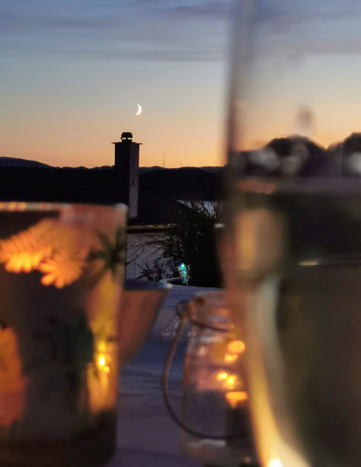 ….litt godt i glasa, solnedgang og kikking på månen 🙂