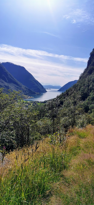 Snur vi oss her, får vi flott utsikt ut Maurangerfjorden 🙂