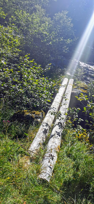 Stien vidare er så ulendt at Jorunn sendte meg avgårde for å sjekka om det i det heile tatt gjekk an å koma seg over på andre sida.