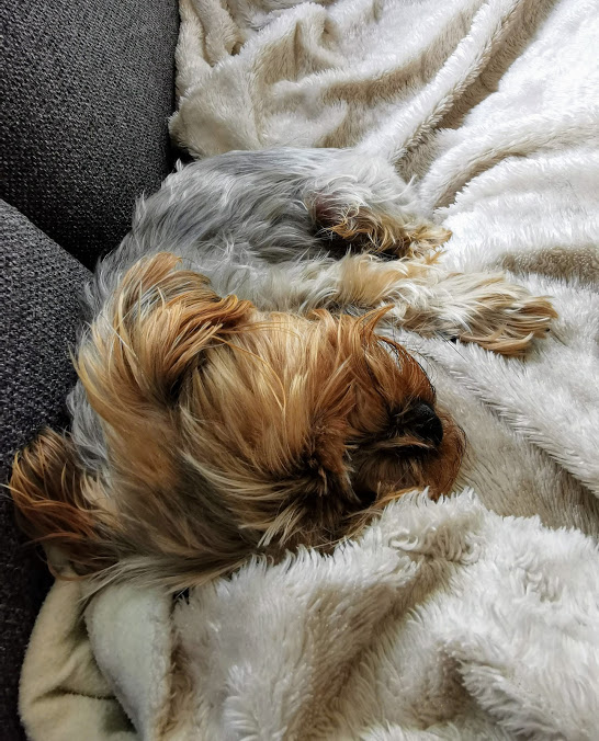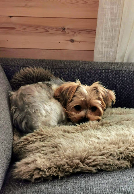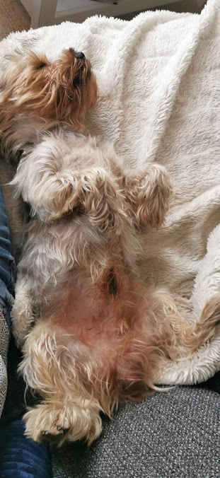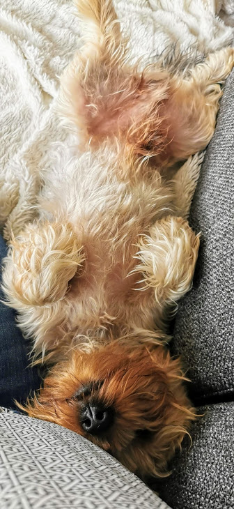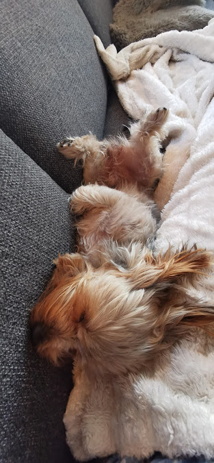 Når vi ikkje gjekk tur, så låg han stort sett i sofaen slik som dette: