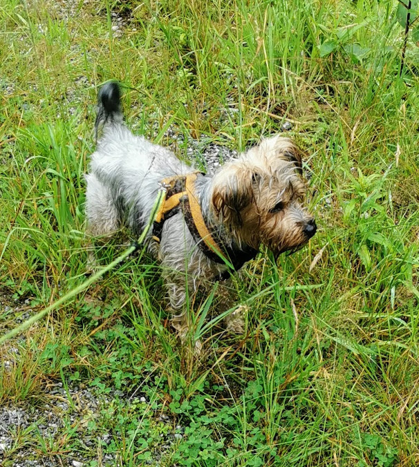 Så då vart det ein våt tur til Kalkestasjonen denne dagen. Det var ikkje aktuelt og sleppa han inn på hverken golv eller sofa slik som han såg ut etter denne turen. Det trur eg nesten han skjøna, for han spaserte nesten heilt frivillig i frå buret sitt og inn i dusjen for ein vask etter turen 🙂