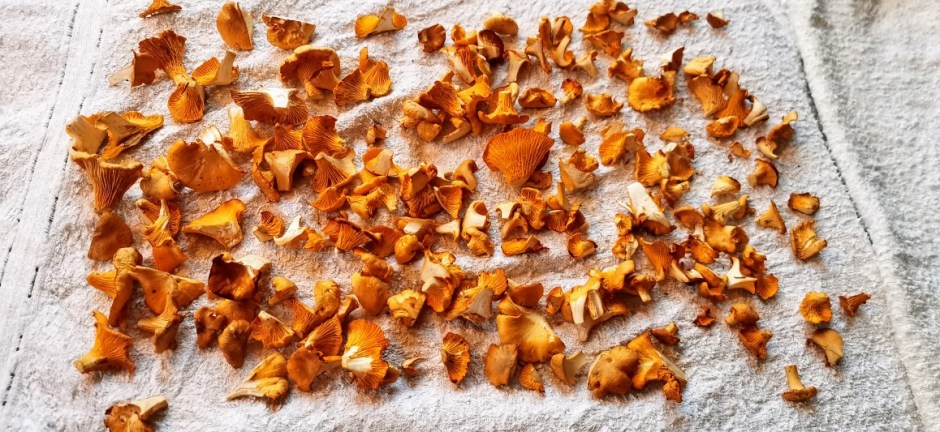 No ligg min aller fyrste sjølvplukka soppfangst til tørk før den vert putta i fryseboksen 🙂