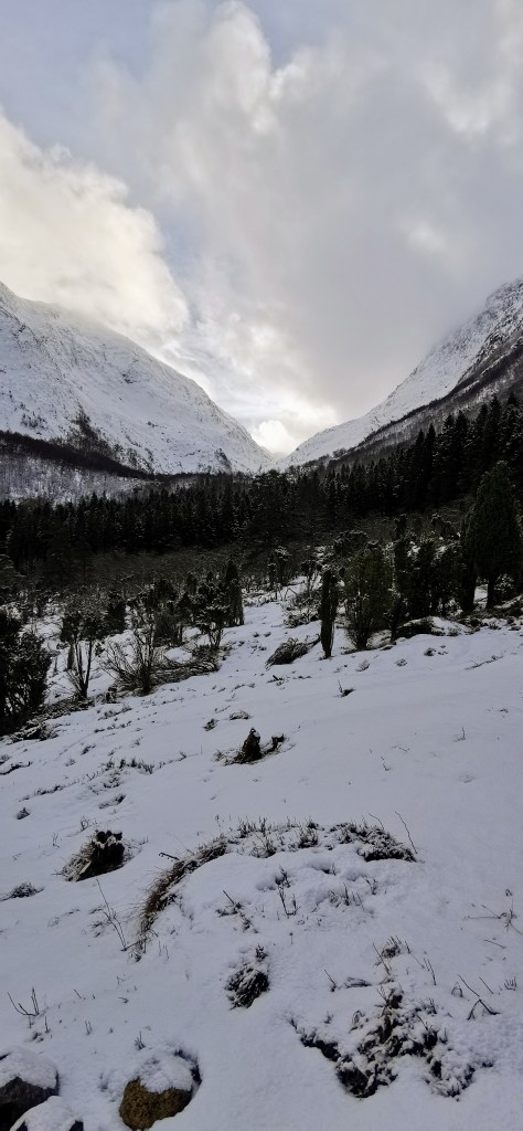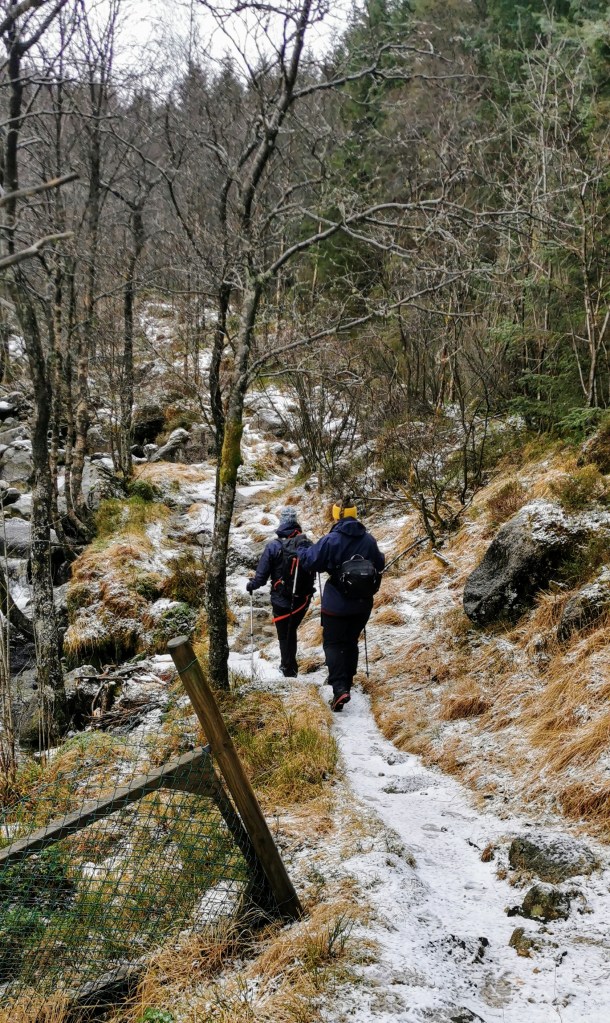Stien til Flåtene var heilt grei å gå i dag. Litt is, sjølvsagt, men ikkje så ille. Då vi nærma oss Flåtene, vassa vi i eindel nysnø. Men snø er jo berre fint 😀