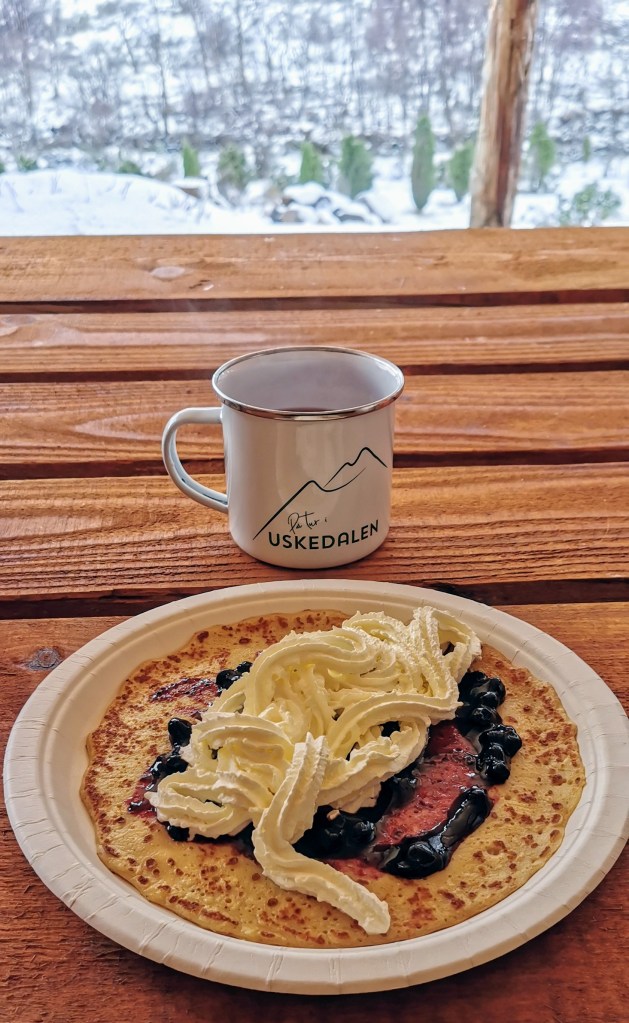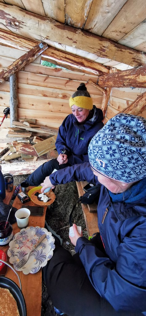 Vi kosa oss i gapahuken med pannekakene, noko varmt i koppen og oppdaterte oss på kva vi hadde gjort så langt i det nye året. Det var igrunnen fort gjort – for i desse koronatider er det jo ikkje så mykje som skjer. Og det var greit at det ikkje tok så lang tid å oppdatera seg, for ein skal ikkje sitja lenge i ro før det byrjar å bli kaldt.