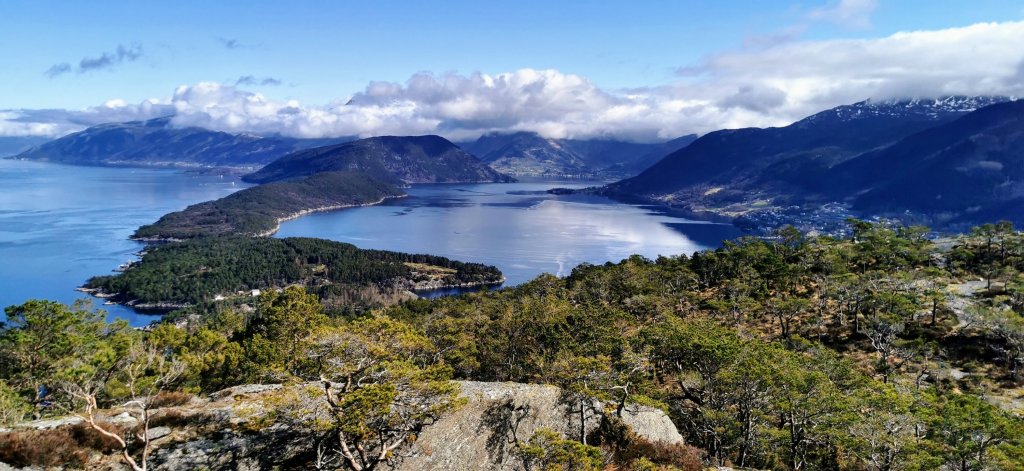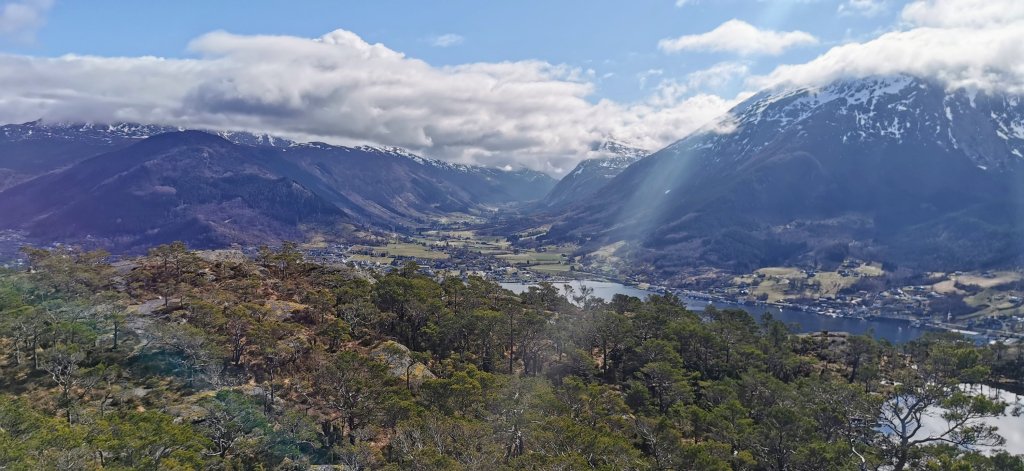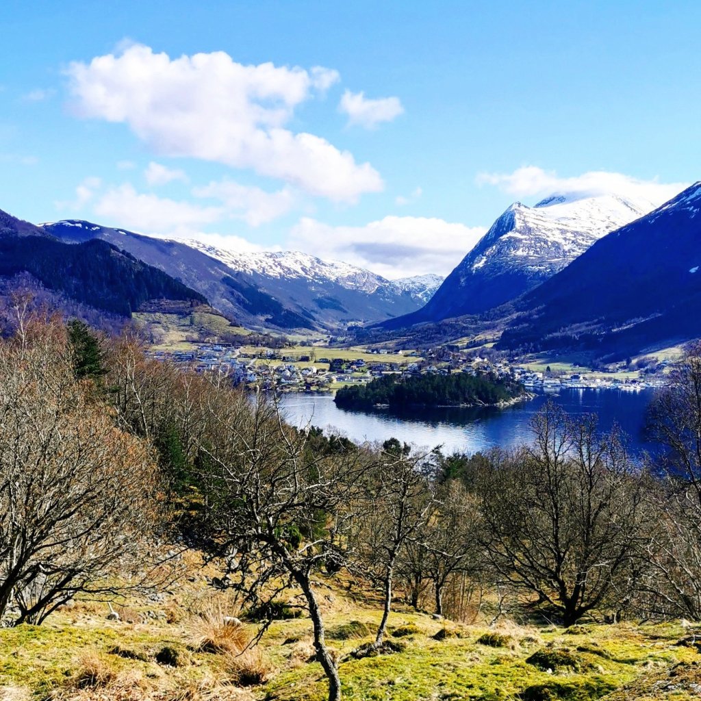På veg over fjorden kom det ein snap i frå naboen som sat i solveggen og kosa seg. Då var det berre til å setja i frå seg sekken heime, tusla over bøen og…