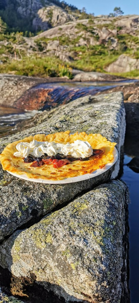Eg kunne levd lenge pĂ„ Ă„ laga mat i skauen pĂ„ stormkjĂžkenet, eg. Men sĂ„ venta eg jo sonen heim pĂ„ friveka – og eg trur ikkje han hadde vorte sĂ„ begeistra over forslaget om Ă„ bli med mor i skauen for middagslaging….