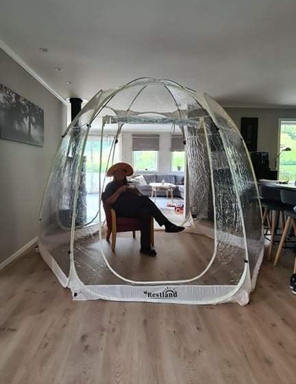 Laurdags ettermiddag var vi klare til å entra Vetrhus, to fullstappa biler – og ein bobil m/glampingtelt…