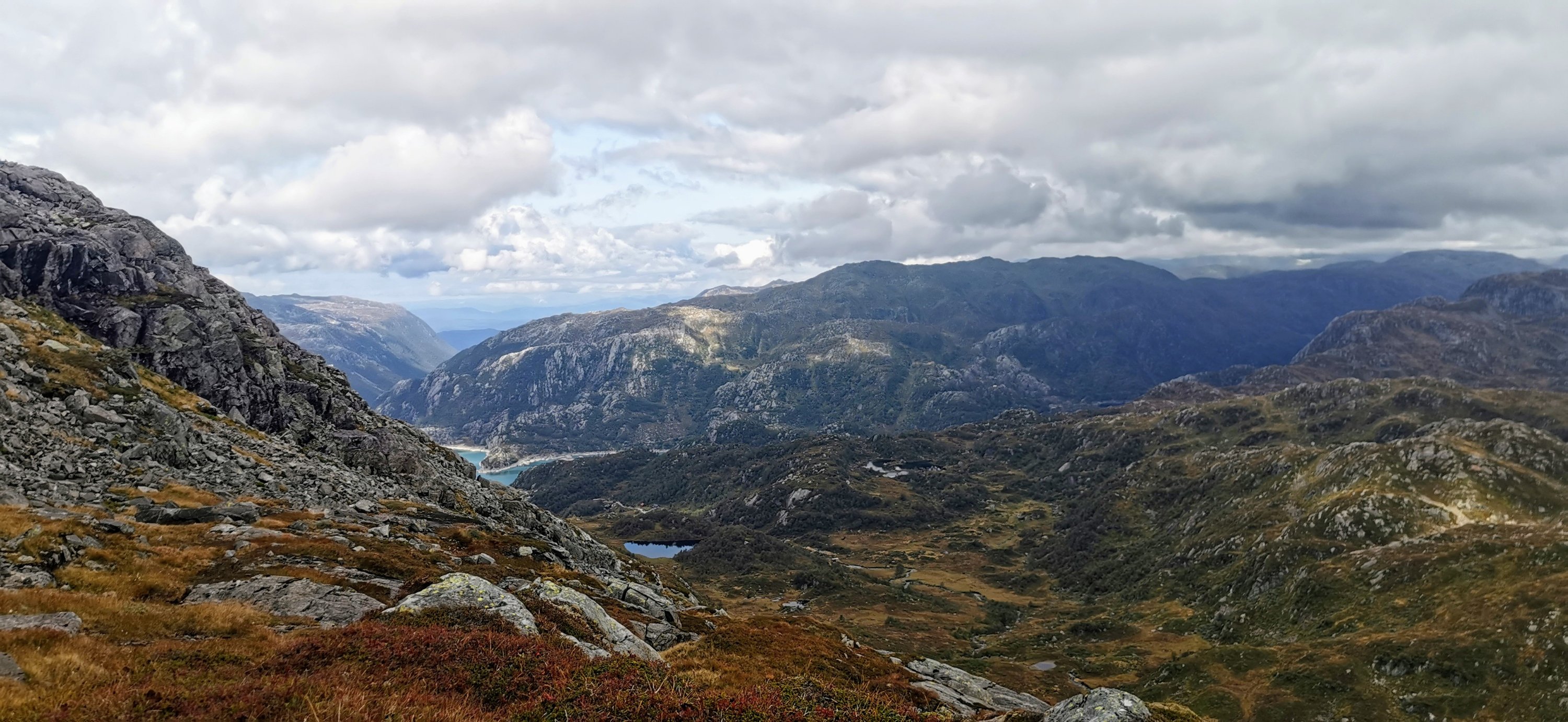 Det er litt bratt og mykje stein pÄ vegen ned, men eg syntes ikkje det var sÄ ille som eg huskar det frÄ den eine turen eg har vore her tidlegare. Tvert i mot syntes, eg det gjekk leikande kjapt og lett..